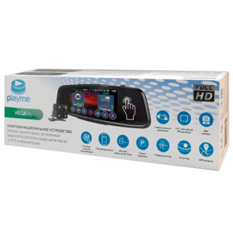 Представляем вашему вниманию новинку в линейке многофункциональных устройств Playme VEGA Touch – видеорегистратор в зеркале заднего вида со встроенным радар-детектором и gps-информатором. В гаджете совмещен и полноценно реализован функционал сразу трех отдельных устройств: двухканального видеорегистратора, радар-детектора и GPS-информатора. В приборе установлен большой сенсорный IPS-экран диагональю 5 дюймов с большим углом обзора и улучшенной цветопередачей.