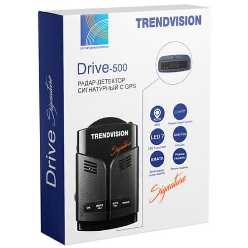 TrendVision Drive 500 Signature - радар-детектор на основе самых современных технологий сигнатурного определения излучения. Контрастный OLED дисплей с яркими и понятными пиктограммами остается различим под прямыми лучами солнца. Радар-детектор отсекает паразитные частоты, определяя только те, что исходят от устройств контроля скорости, считывая их уникальную частоту излучения – сигнатуру. Drive 500 Signature обладает компактными размерами и стильным дизайном.